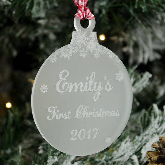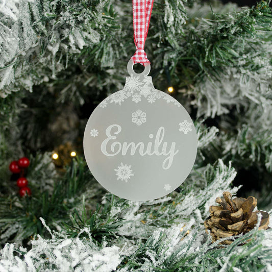 Personalised Name Christmas Tree Decoration, Frosted Acrylic.
