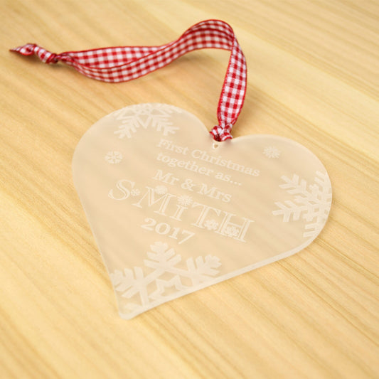 First Christmas Together, Personalised Heart Christmas Decoration, Frosted.