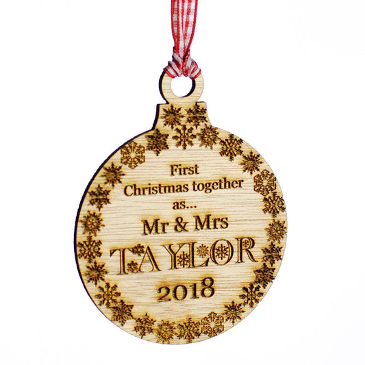 First Christmas Together Bauble. Hardwood.