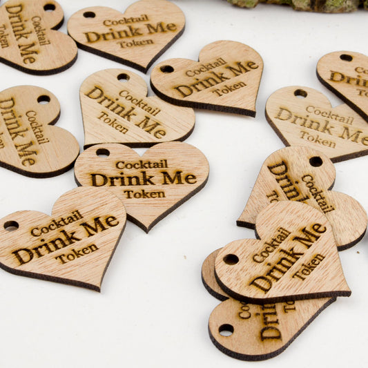 Personalised Wooden Drink Tokens - 4cm Hearts.