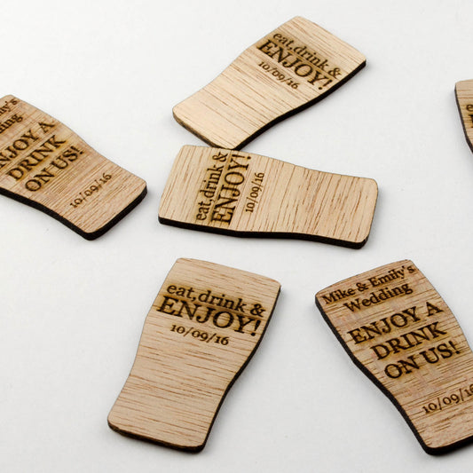 Personalised Wooden Drink Tokens - Pint Glass.