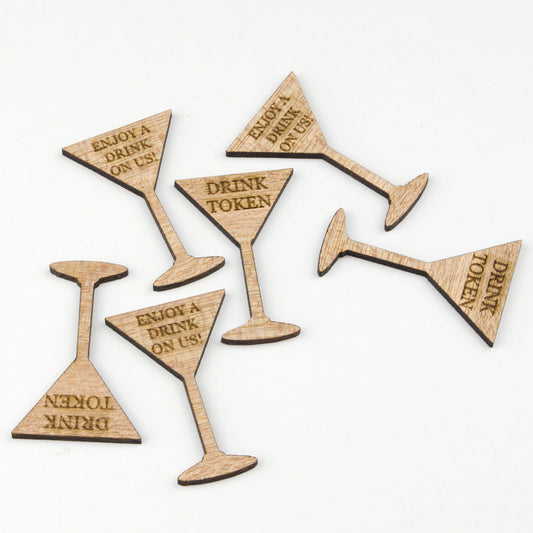 Personalised Wooden Drink Tokens - Cocktail Glass.