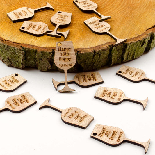 Personalised Wooden Drink Tokens - Wine Glass.