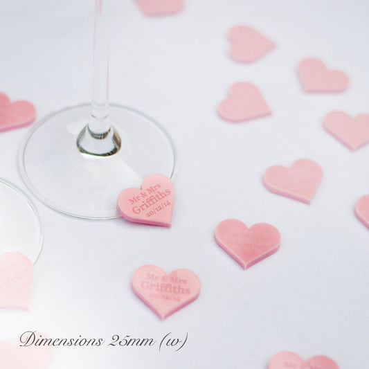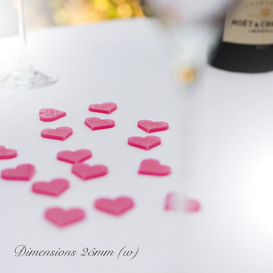 Personalised 25mm Clear Frosted Acrylic Hearts.