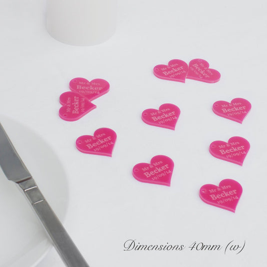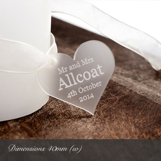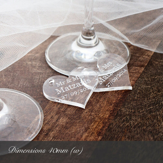 Personalised 4cm Clear Frosted Acrylic Hearts.